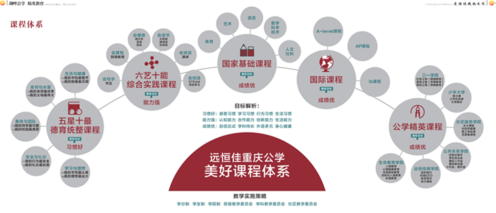 遠恒佳重慶公學以“習慣好、能力強、成績優(yōu)”為育人目標,開設國家基礎課程,國際課程,“五星十最”德育統(tǒng)整課程,“六藝十能”綜合實踐課程,生命教育(生活教育、心理健康教育、生涯規(guī)劃教育)、財商教育、少年科學家等獨具特色的公學學院課程。