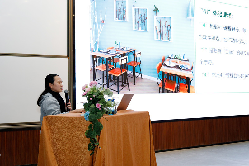 公學(xué)幼兒部負(fù)責(zé)人王婷在大會(huì)中做匯報(bào)
